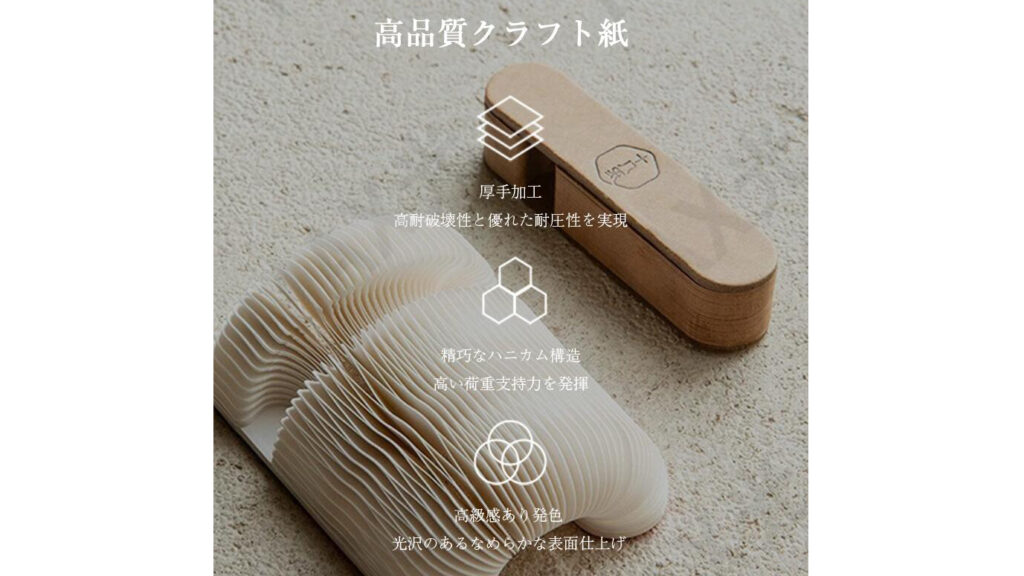 この構造により、高い荷重支持力を持ちながら、紙とは思えない安定性を発揮します。