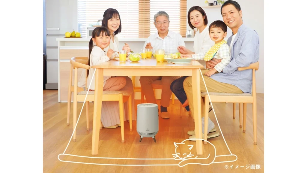 対面に座っている家族や同僚の足元にもムラなく熱を届けるため、テーブルの中央に置くだけで全員がぽかぽかに。