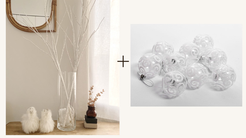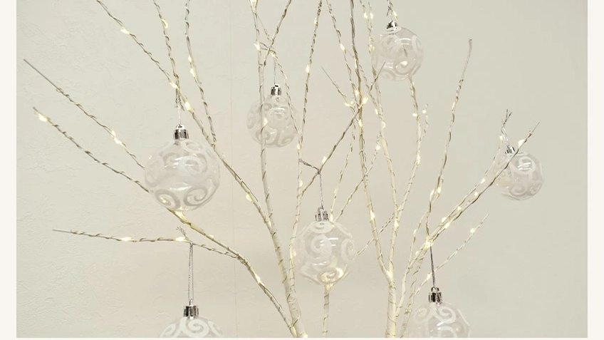 オーナメントは取り外し可能で、季節外には枝のオブジェやライトデコレーションとして使うことも。