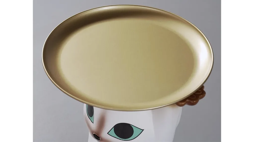 猫が支える天板には、“日常を支える”というさりげないメッセージも込められているよう。贈り物として、センスの光る一品です。