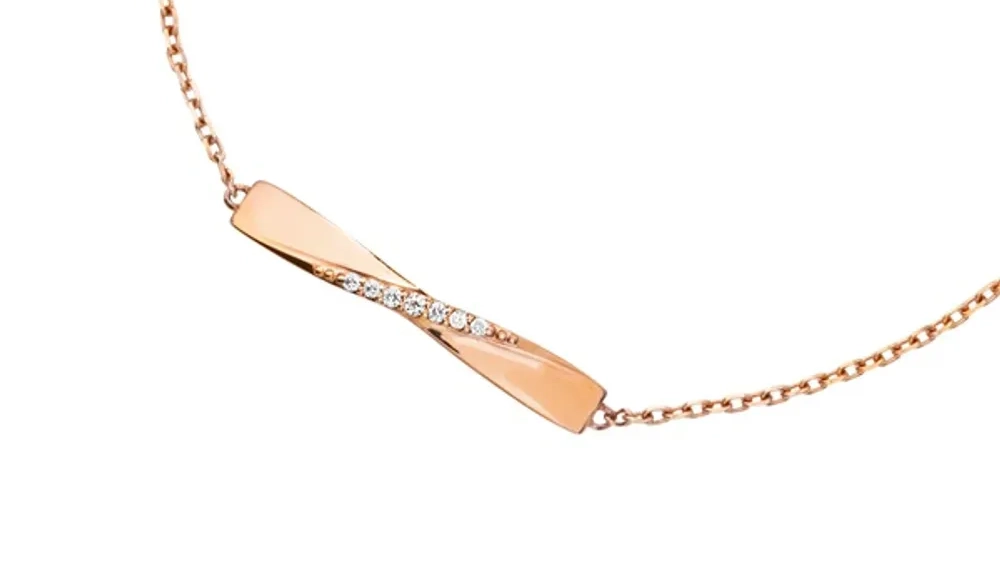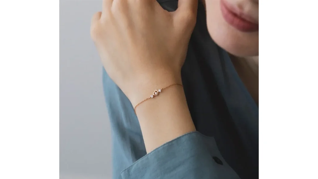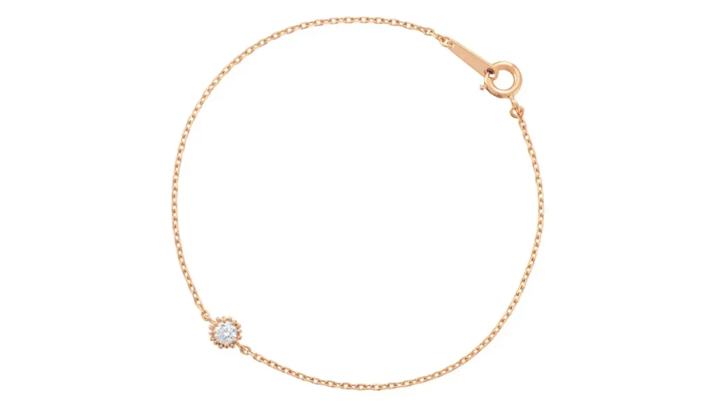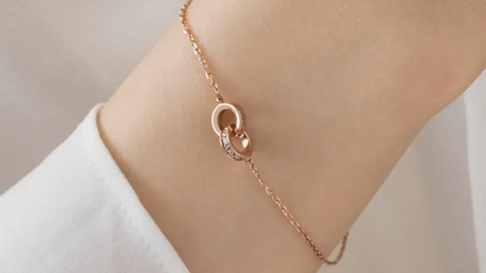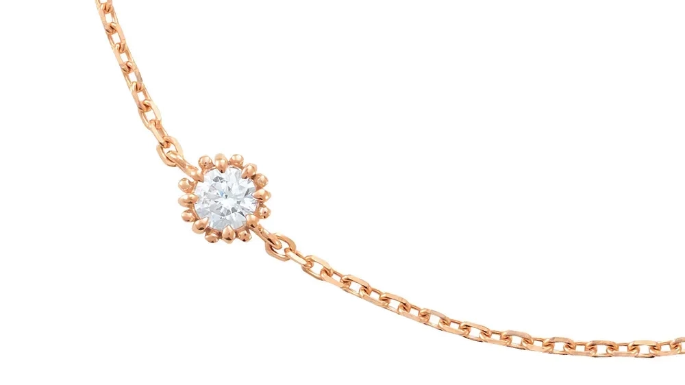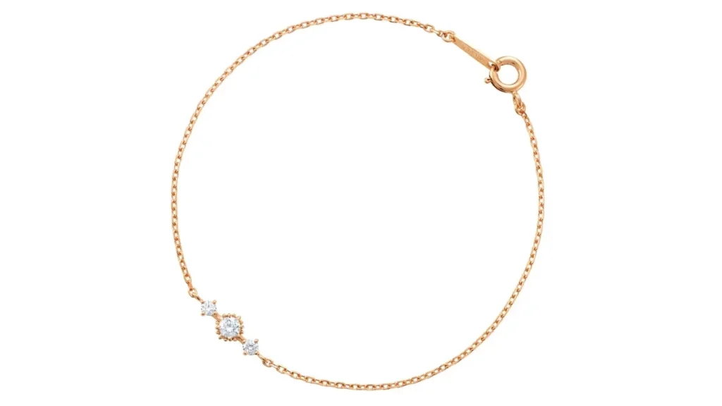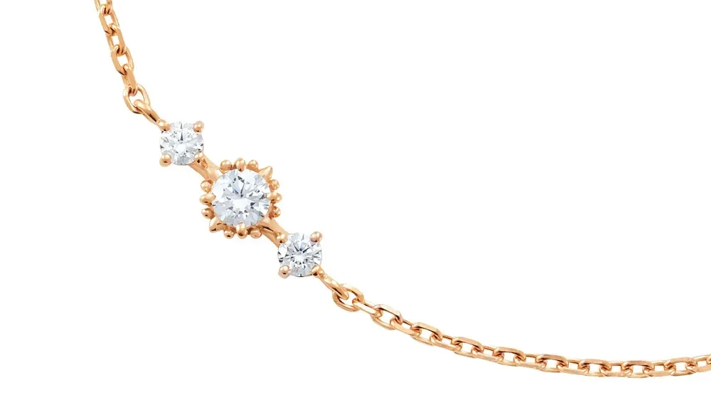 3石のジルコニアが連なる「152424131013」は、ピンクゴールドの温かい色味が手元を明るく見せ、さりげないアクセントに。