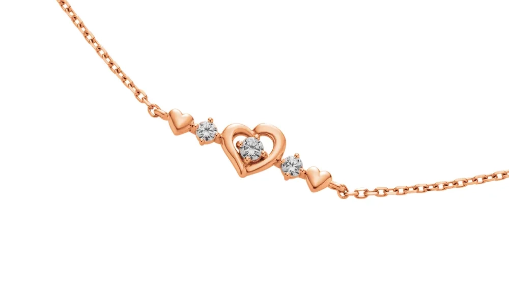 オープンハートやダイヤ3粒をあしらったK10ピンクゴールドシリーズは、より大人っぽく、長く愛用できる上質さが魅力。社会人の彼女や奥さまへのプレゼントに選びたいデザインです。