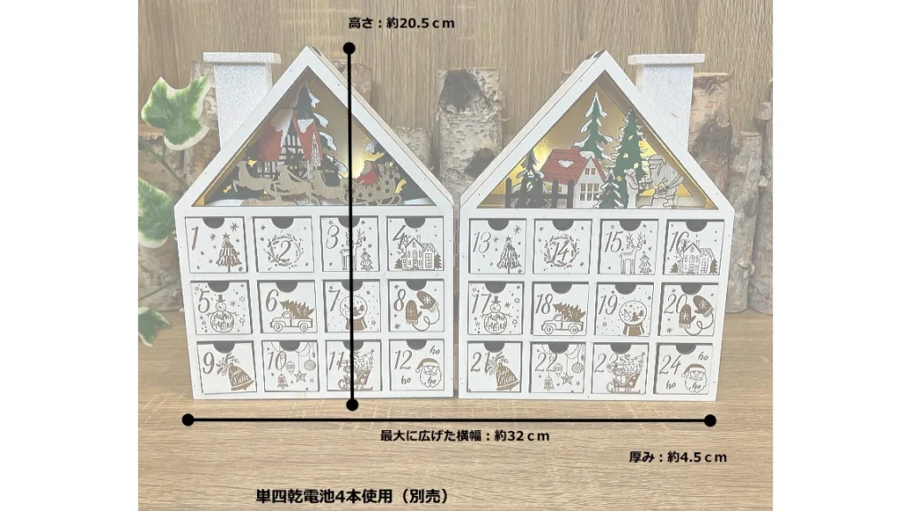 この「小さな煙突のおうち」は、その日々を“開ける喜び”と“飾る楽しさ”の両方で味わえる、北欧風のナチュラルな木製カレンダーです。