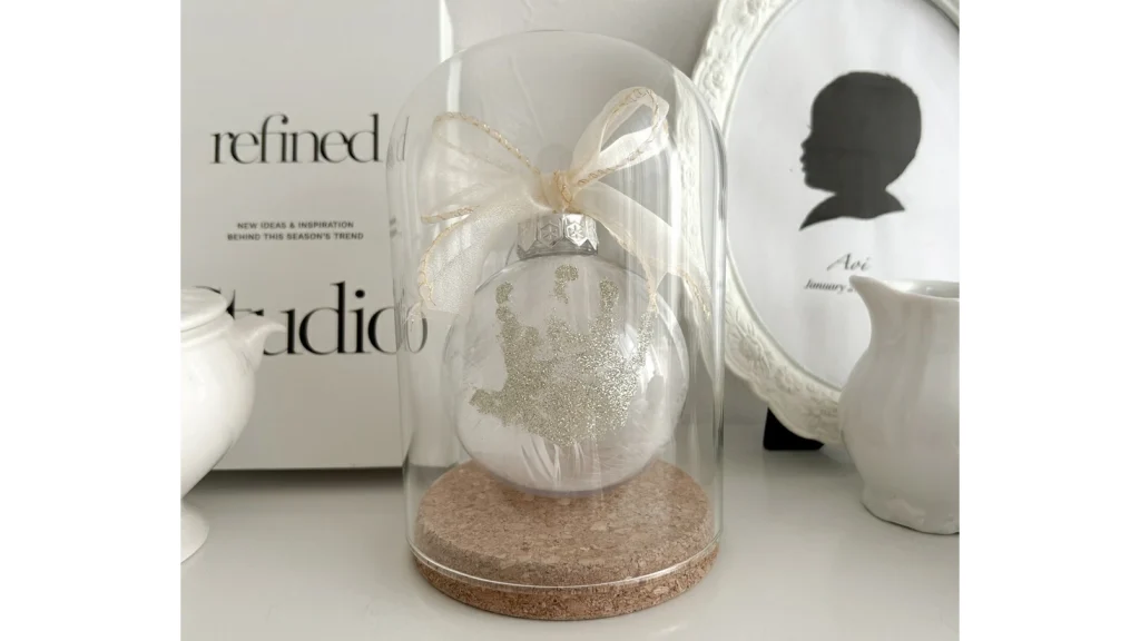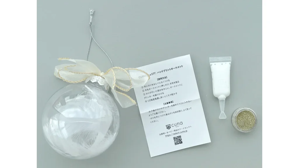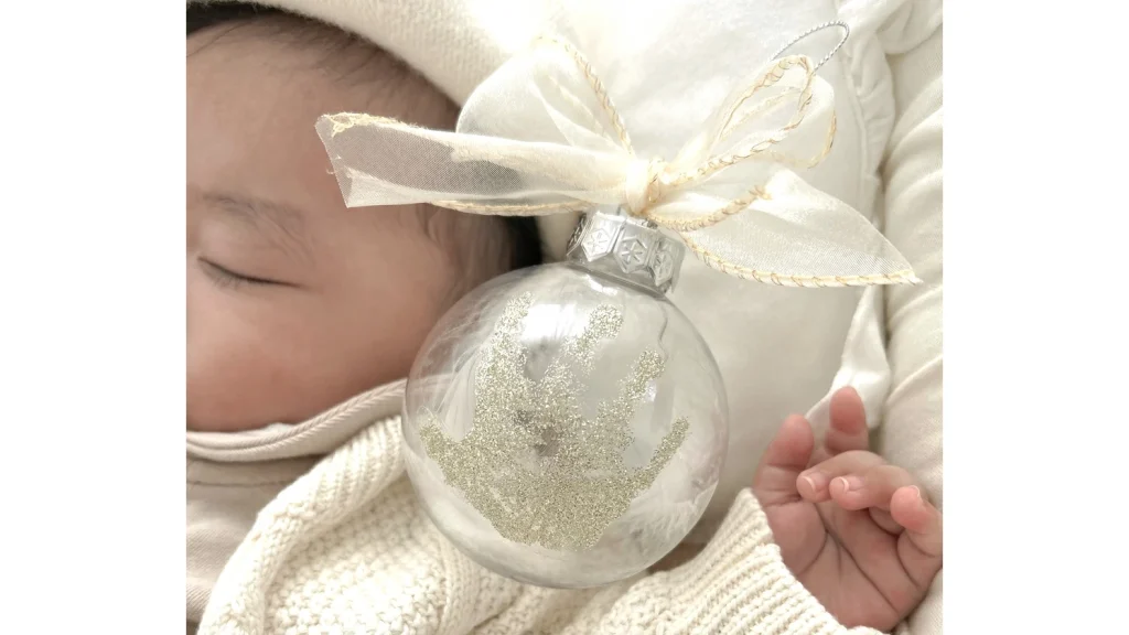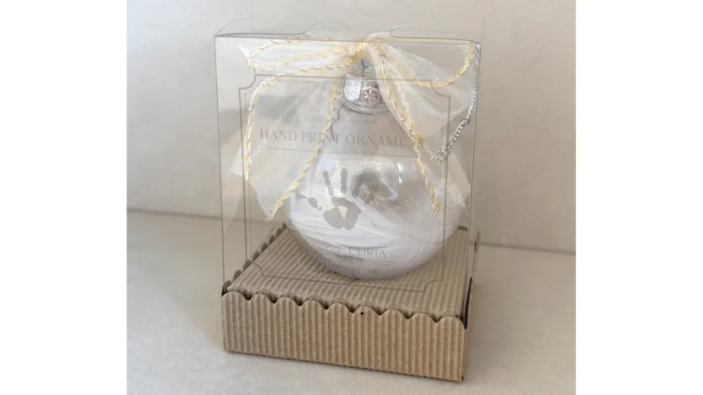 そんな想いを形にできるのが、「CURIA(キュリア)ハンドプリントオーナメント」です。透明な球体にベビーの手形をプリントして飾れる、世界にひとつだけのメモリアルオーナメント。