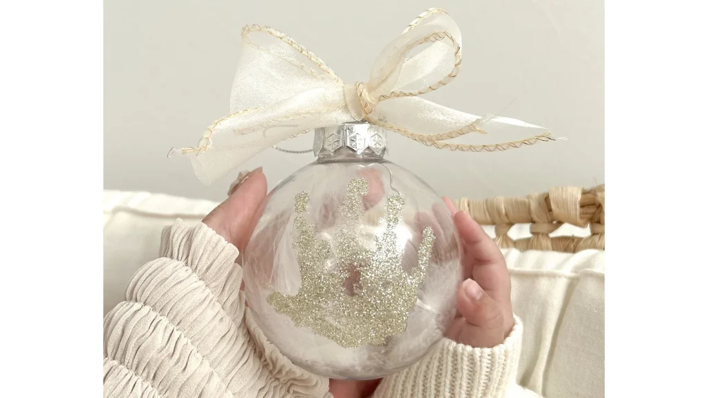 わずか数分の作業で、かわいい小さな手形がキラめく世界でひとつのオーナメントに。