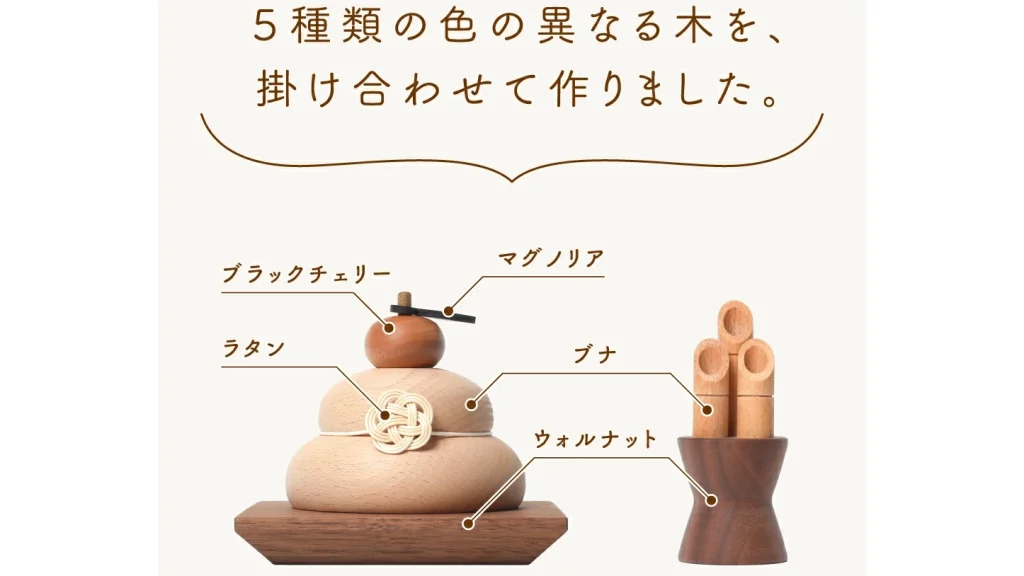 その「経年美化」を楽しめるのも、木製鏡餅ならではの魅力です。年を重ねるごとに味わいが増し、まるで家族の歴史を一緒に刻んでいくような存在に。