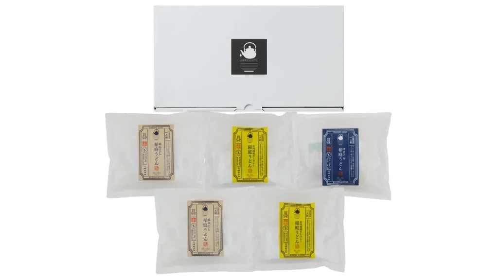 「イケガヤ お湯をかけるだけで出来る稲庭うどん」は、3種類の味わいが楽しめるセット。