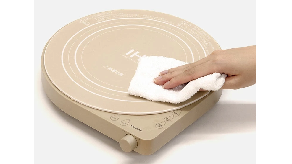 天板はフラットなガラス製。油はねや煮汁がこぼれてもサッと拭くだけで清潔を保てます。凹凸がないので汚れがたまりにくく、毎日の使用後のお手入れも簡単です。
