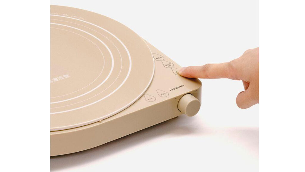 一般的なIHクッキングヒーターは四角いデザインが多いですが、この製品はめずらしい円形フォルム。コンパクトでスタイリッシュなので、食卓に置いても圧迫感がなく、複数人で囲むシーンでも邪魔になりません。