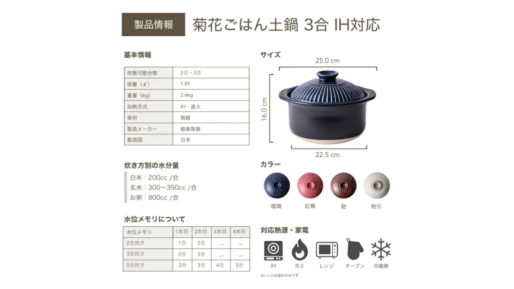 商品名 | 菊花 ごはん土鍋 3合 IH対応 |
