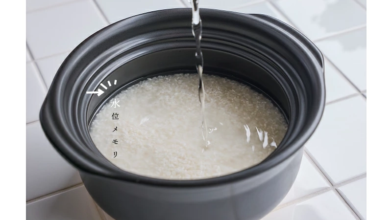 鍋の内側に水位メモリが刻まれており、計量カップでわざわざ水を測る必要がありません。