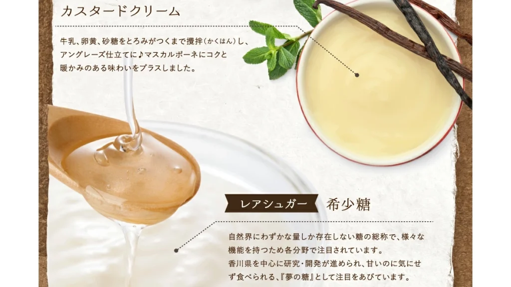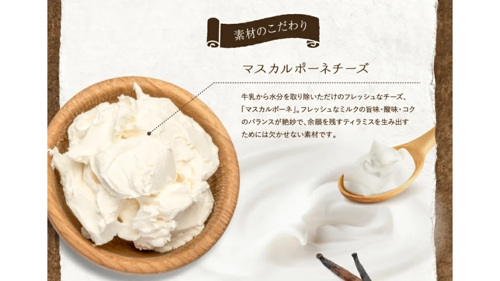 マスカルポーネのまろやかなコクに、和の素材を組み合わせることで、重すぎず上品な甘さを実現しています。