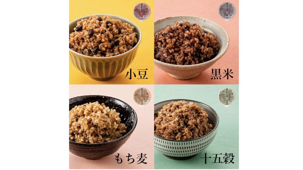 「寝かせ玄米ごはんパック」は、味と栄養のバランスを考えた4種類のブレンド。