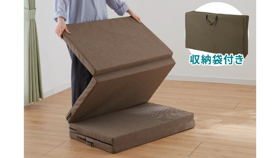 四つ折りタイプで収納しやすく、届いたその日から快適に使えるのがうれしいポイント。