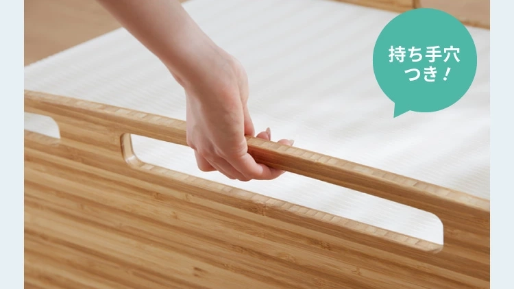 上部には持ち手穴を設けており、出し入れや持ち運びもしやすい設計。