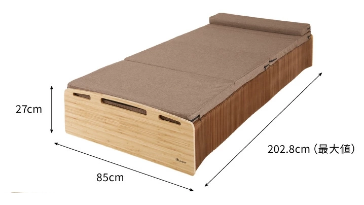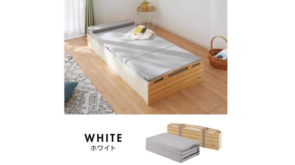 軽くて強く、収納にも便利なこのベッドは、シンプルライフや来客用、引越し先での一時使用にも最適。