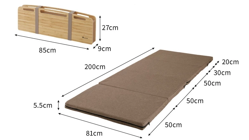 ベッド本体には、折りたたみ式マットレスがセットになっています。