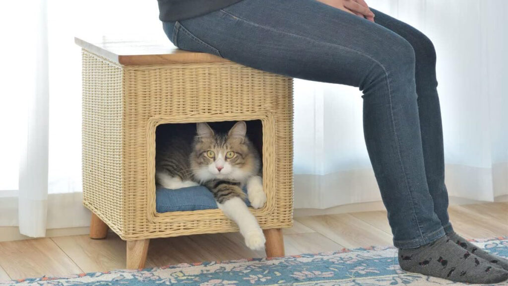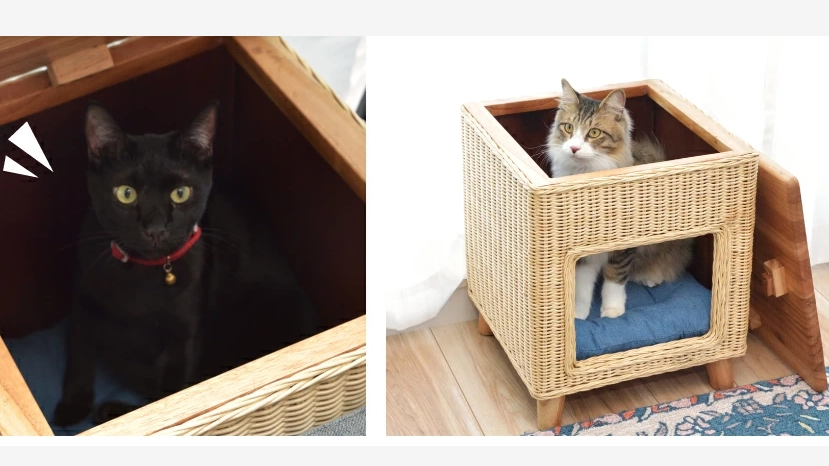 「ペットハウススツール」は、ペットと飼い主が共に快適に過ごせる多機能家具。