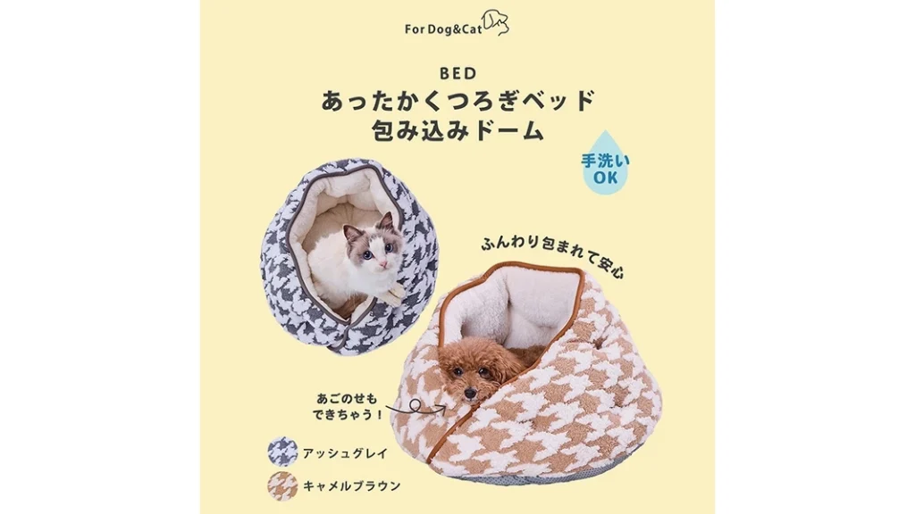 Petioの「犬猫用あったかくつろぎベッド」は、見た目のかわいさと機能性を両立した冬の必需品。