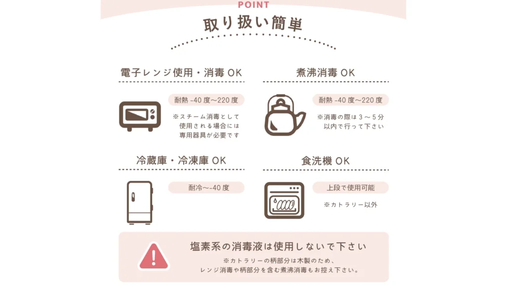 ■ 安心のシリコン素材。煮沸OK・電子レンジOKでお手入れラクラク