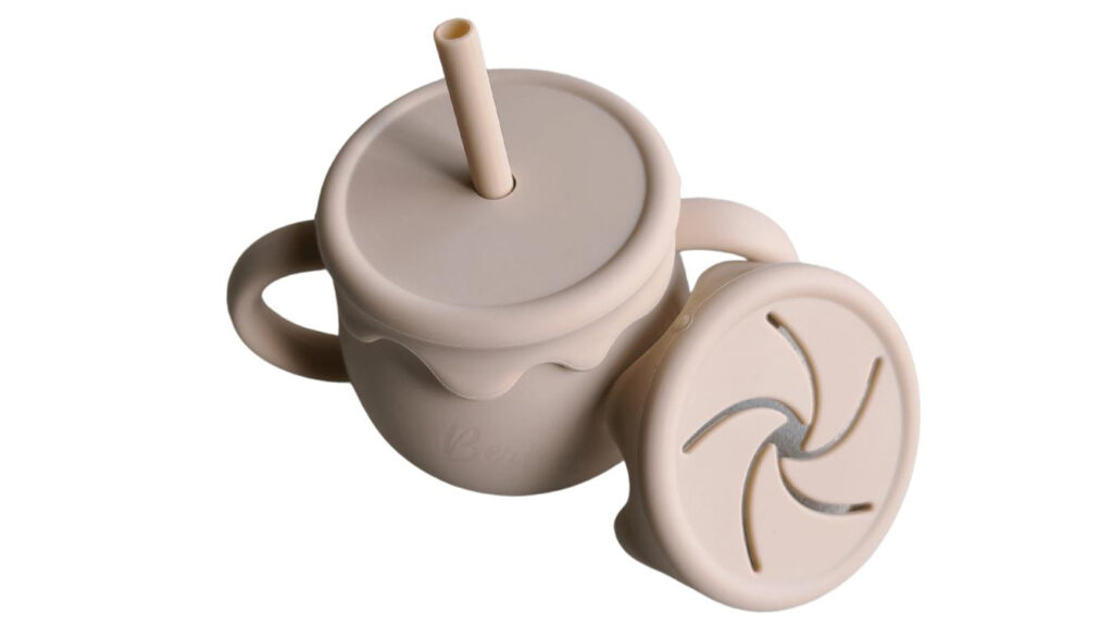 ストローマグから直飲みカップ、さらにおやつ用のスナックカップへ…。