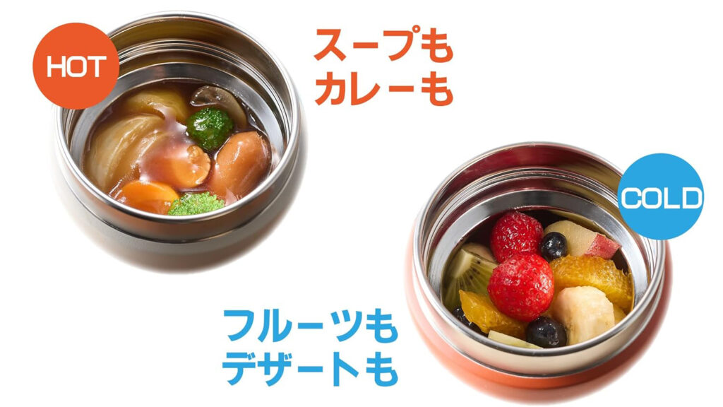 夏場は冷製スープやサラダパスタなどを冷たいまま持ち運ぶこともできます。季節を問わず一年中活躍してくれる頼もしいアイテムです。