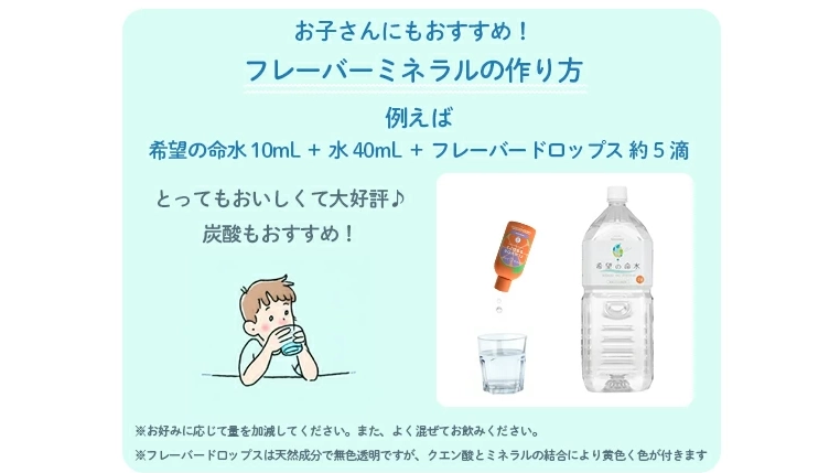 特に「希望の命水」などのミネラルウォーターと組み合わせると、相乗効果でより美味しく、機能的なドリンクに仕上がります。