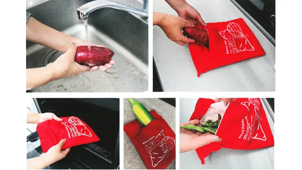 焼きいもバッグの使い方は驚くほどシンプルです。用意するのはさつまいもと電子レンジだけ。
