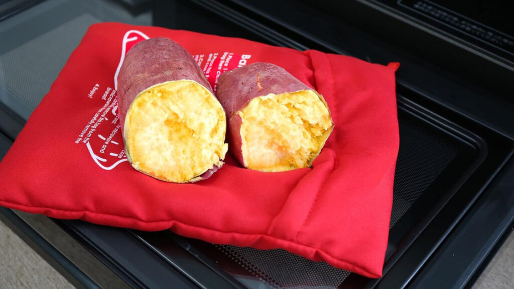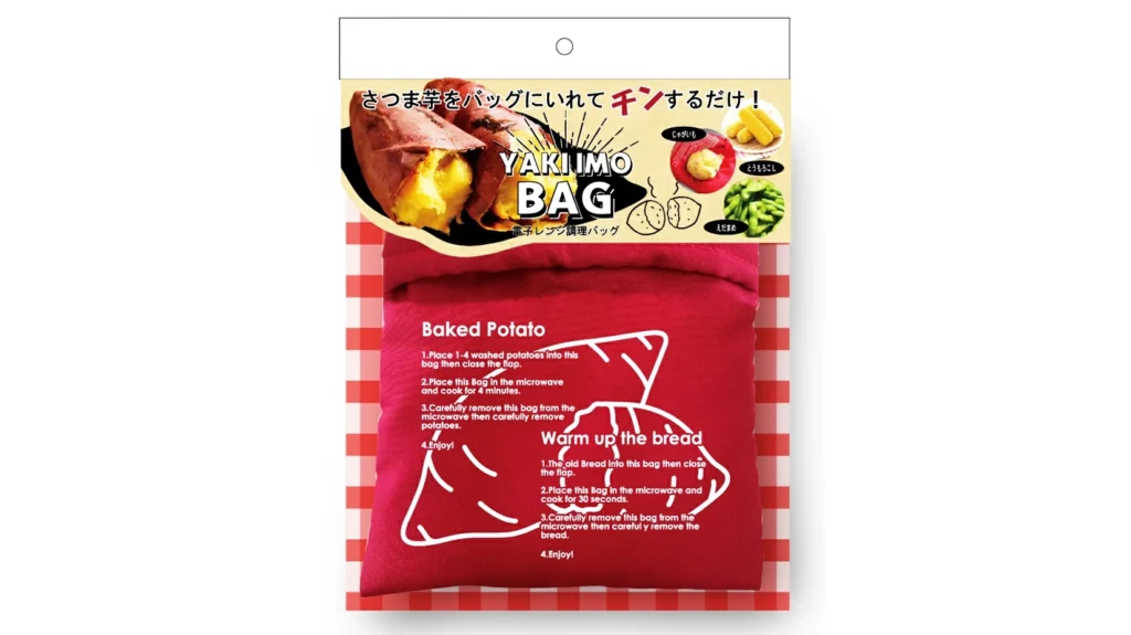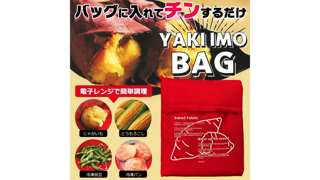 さつまいもをバッグに入れてレンジで加熱するだけで、しっとり甘い焼き芋が約5分で完成する便利アイテムです。